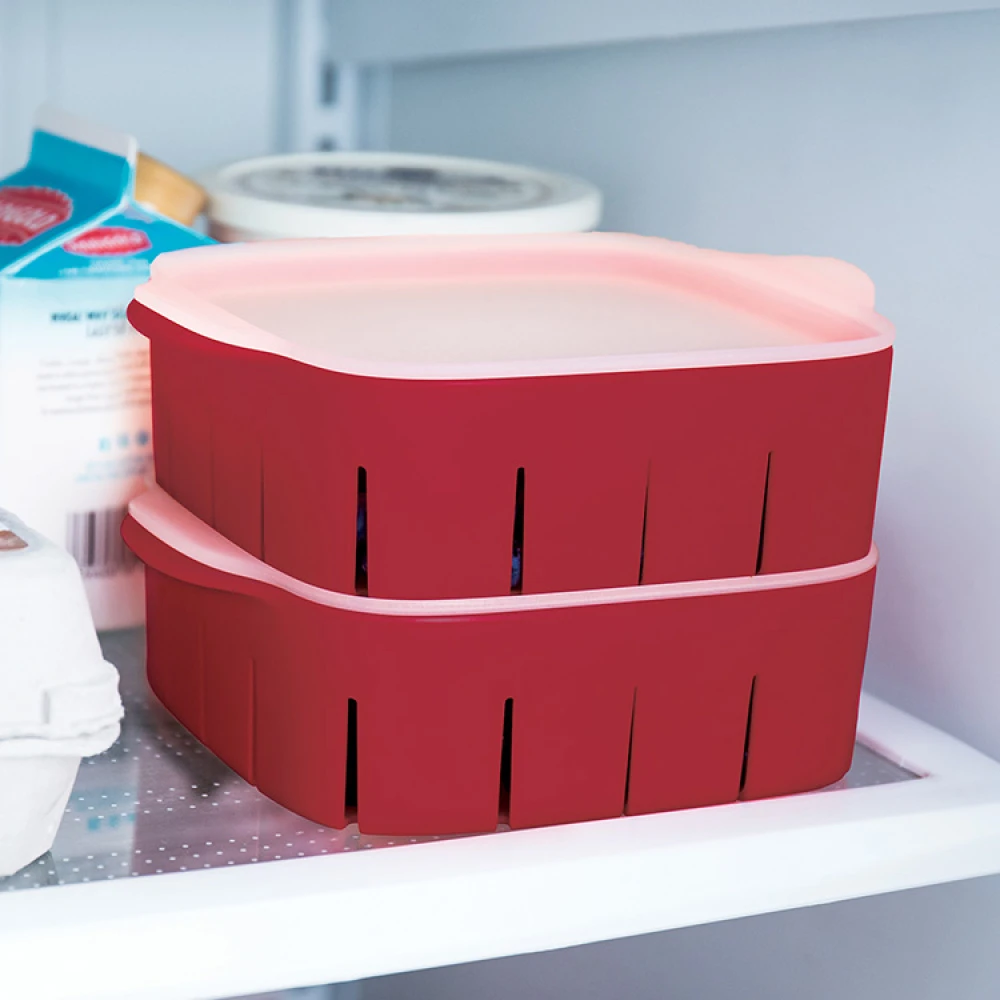 Sæt låget på sien, når du sætter den i køleskabet. Låget gør det nemmere at finde en god opbevaringsplads i køleskabet og derudover er låget designet, så man kan stable flere bærekasser oven på hinanden. Perfekt, når du har mange bær!