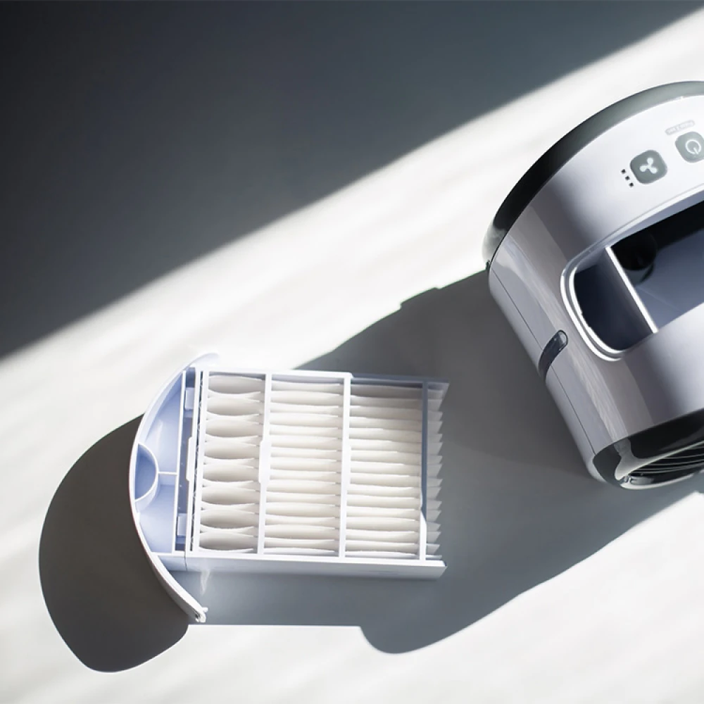 Du kan også få bordventilatoren til at sprede en dejlig vandtåge, der fugter luften. Vandtågen giver en højere luftfugtighed i rummet og bidrager til et bedre arbejdsmiljø.