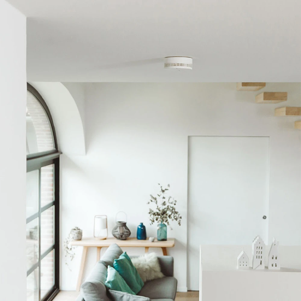 Røgalarmens optiske sensor advarer, så snart den registrerer røgpartikler i rummet. Placer røgalarmen i loftet med gerne 50 cm fri plads i alle retninger. Sørg for, at du har WiFi-dækning på det valgte sted, før du installerer røgalarmen.