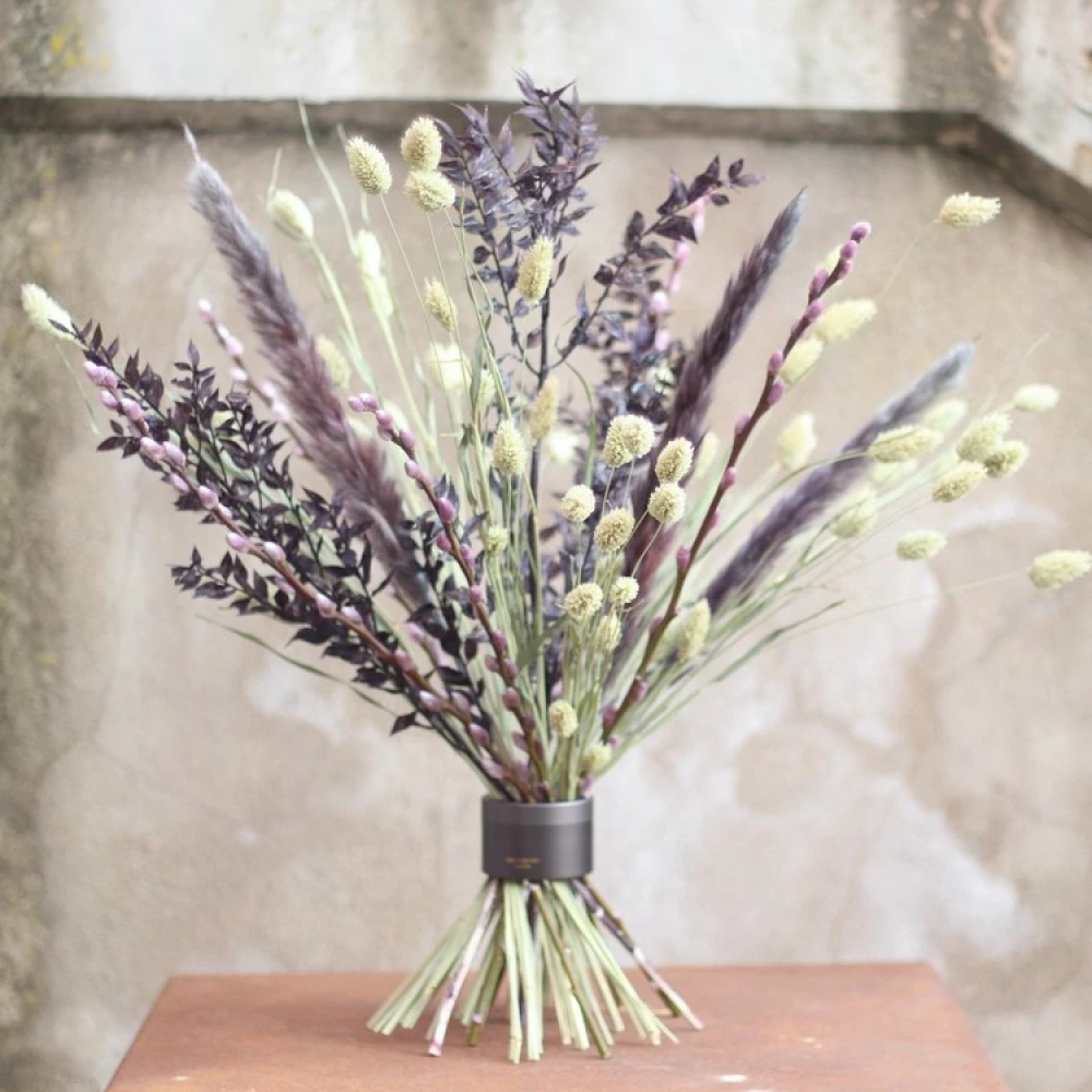 Du behøver ikke nogen forudgående viden om blomsterbinding, og du kan kombinere både tørrede blomster og friske afskårne blomster i buketholderen.