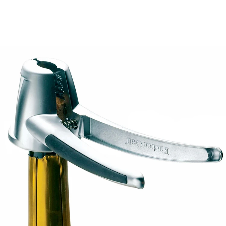 En robust og stærk oplukker, der giver fuld kontrol over åbningen af champagneflasker og andre boblende drikkevarer, hvor proppen stikker ud af flasken. Stramt siddende kapsler til sirup og plastikpropper på PET-flasker er ikke noget problem for oplukkeren, som også er en effektiv nøddeknækker!
