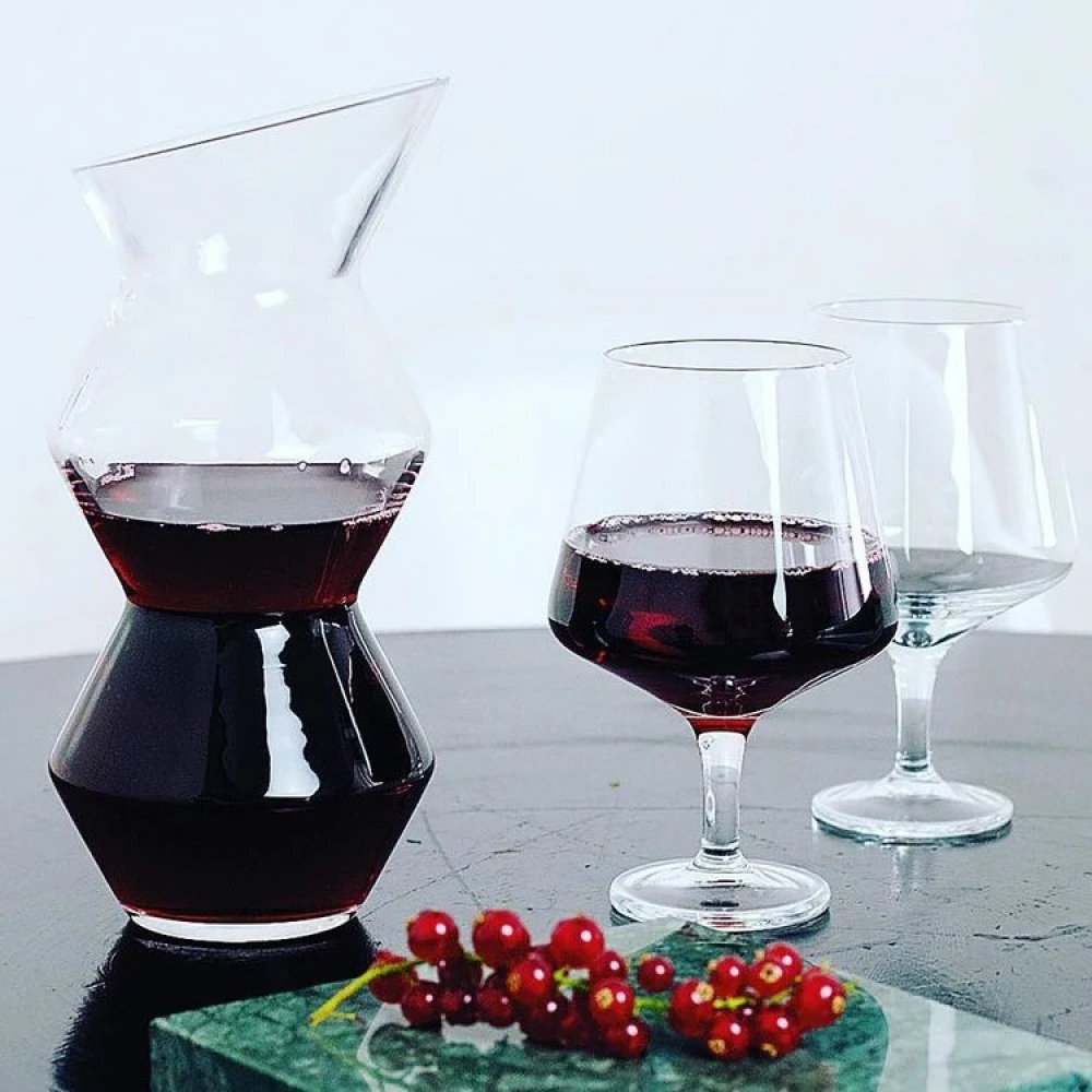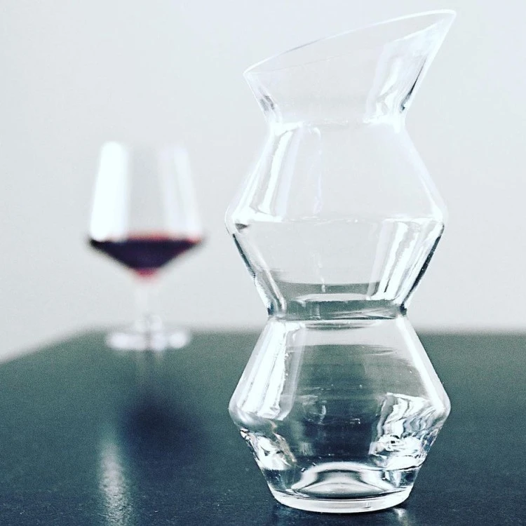 Dekanteringskaraflen AERO fra det finske firma Magisso er designet af Simon Stevens. Karaflen var finalist i Tableware International Award of Excellence 2019.