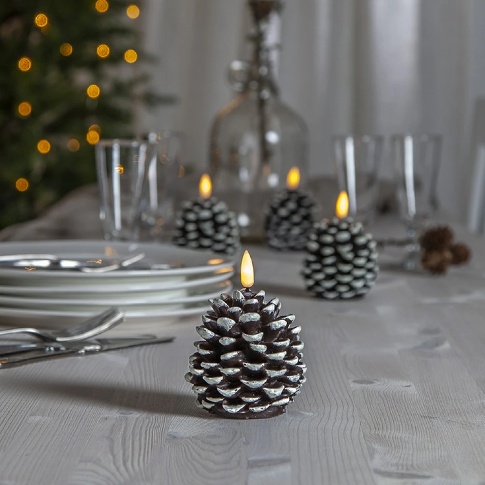 De dekorative kogler er kun til indendørs brug. Den leveres med 1 udskifteligt CR2032-batteri, og den energibesparende LED-lampe giver ca.100 timers brændetid.