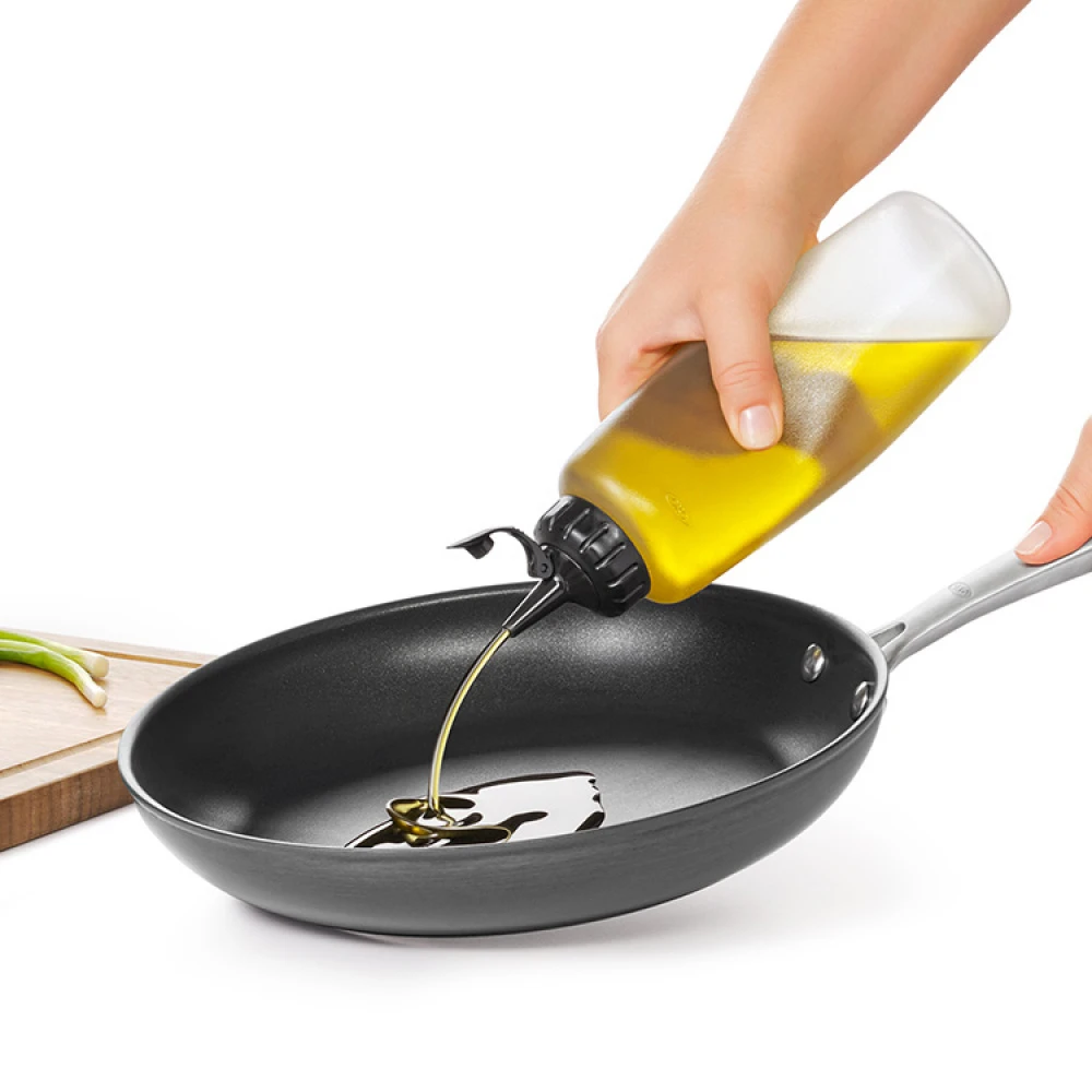 Du bestemmer selv, hvor meget du vil dosere ved at trykke på flasken. Den lille hældetud giver god kontrol over flowet og du kan hælde olie i bradepanden, drysse dressing over en salat eller pynte tallerkenen med præcision.
