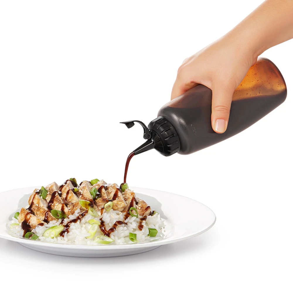 Bland dine egne saucer, dressinger og marinader direkte i flasken! Graderingen på ydersiden af flasken gør det nemmere, når du vil måle og følge opskrifter. Låget klikker på og sidder derefter fast, så du kan ryste flasken uden at spilde.