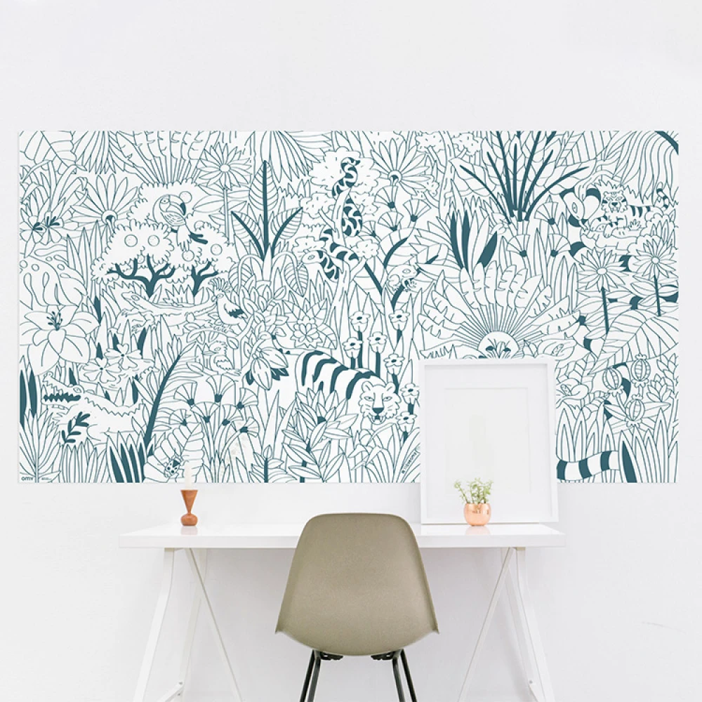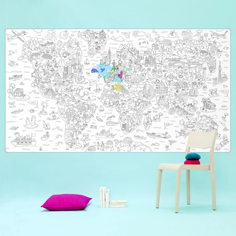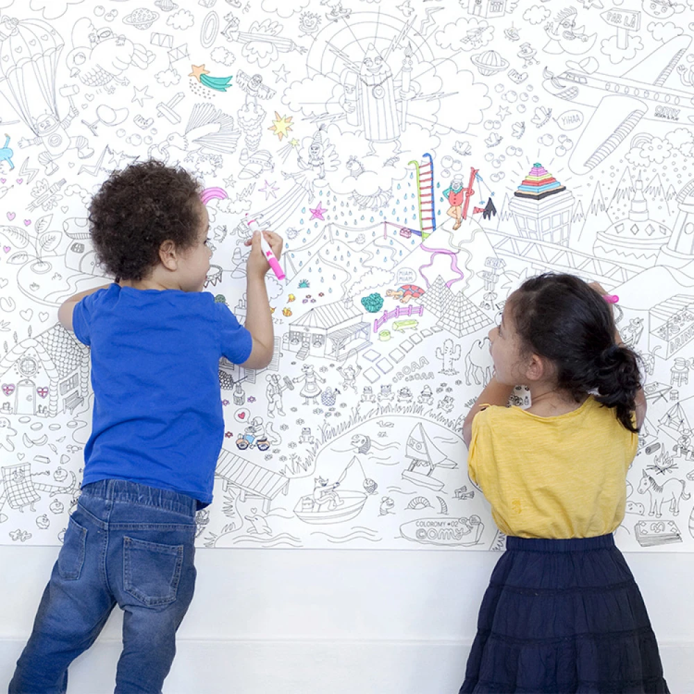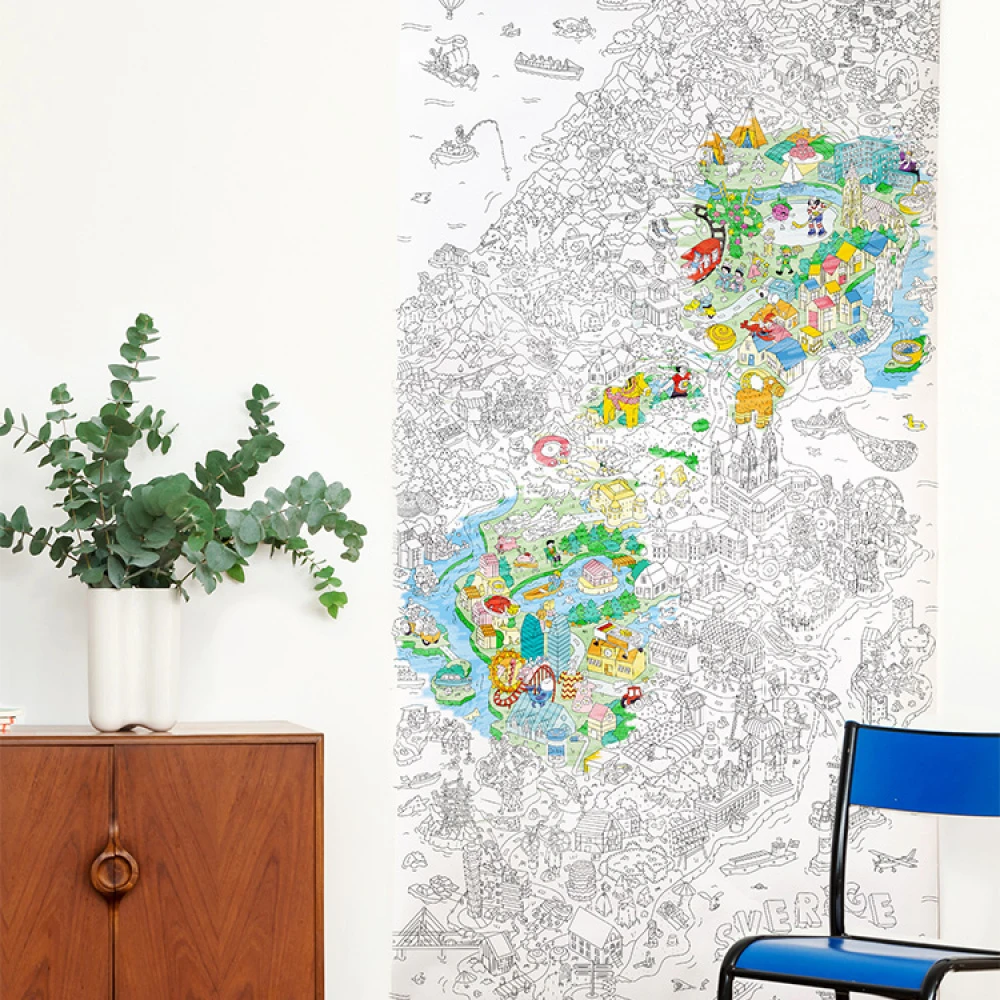 Når du maler, kan du have plakaten liggende på gulvet, køkkenbordet eller hænge den direkte på væggen. Plakaten er 180 cm x 100 cm stor og er lavet af et tykkere papir, der kan farves med både blæk, kridt og farveblyanter. Vælg mellem flere forskellige motiver og temaer!