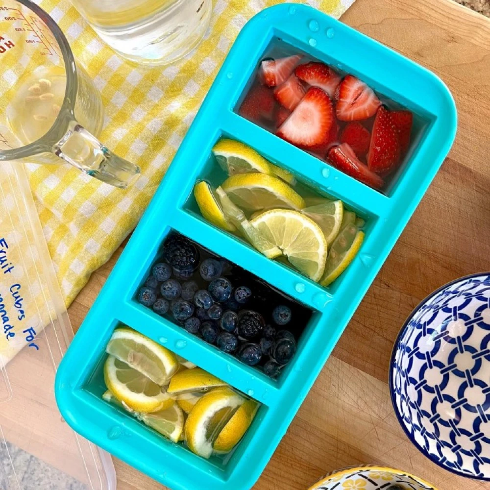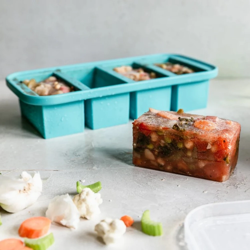 Souper Cubes er robuste silikonefryseforme med rum i portionsstørrelse, der er velegnede til nedfrysning af mad, saucer og rester. De fås i tre forskellige modeller og har et tætsluttende låg, der beskytter maden og gør dem stabelbare i fryseren.