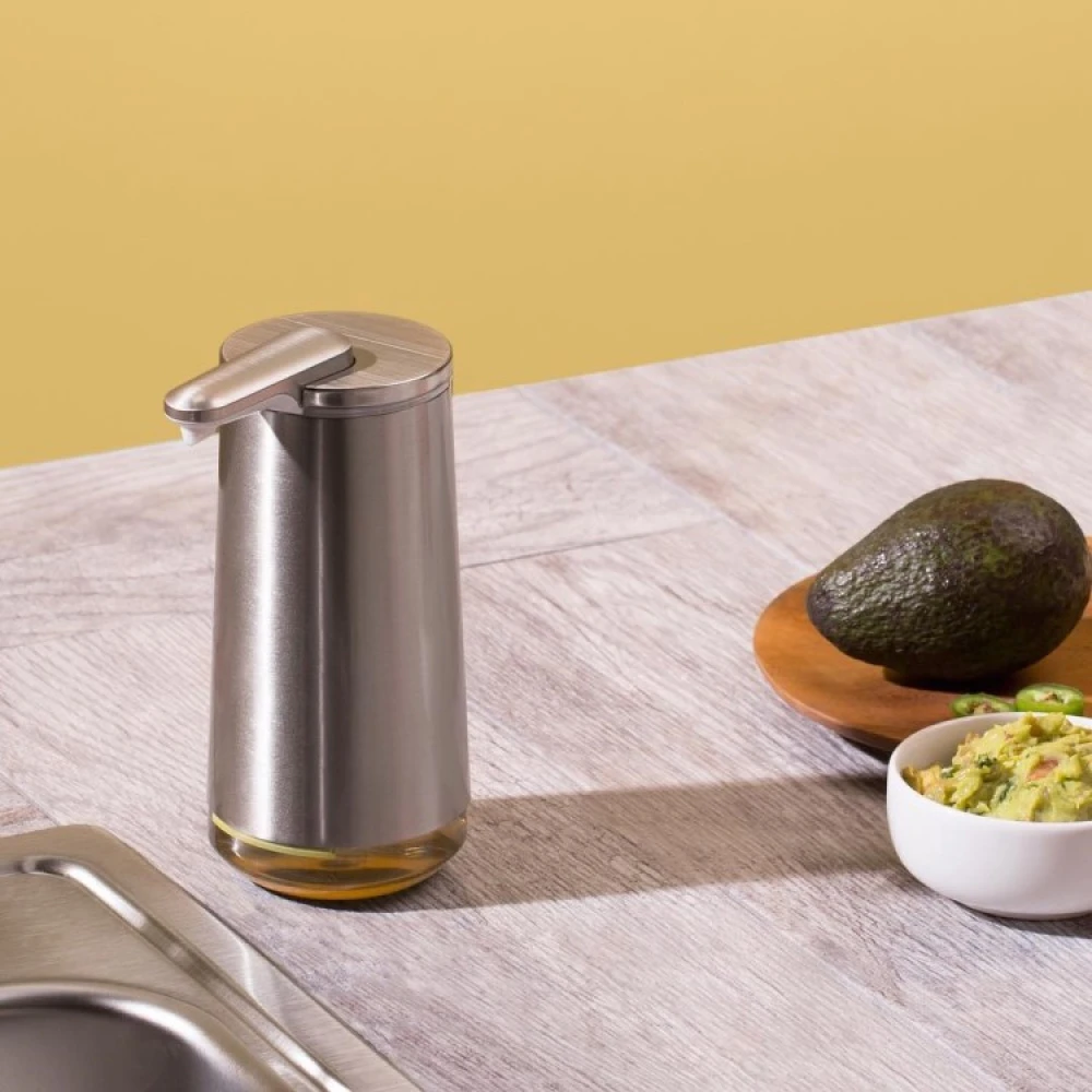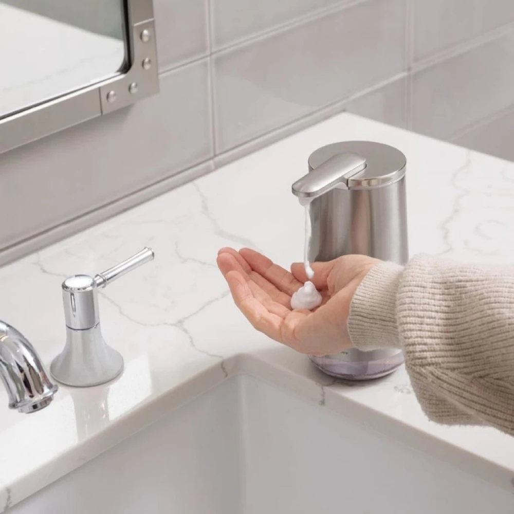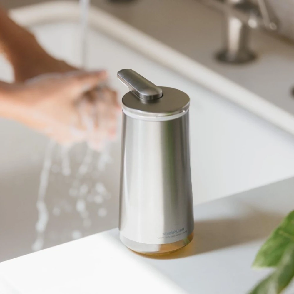 Med Simplehuman’s luksuriøse skumpumpe kan du vaske dine hænder med en dejlig skummende sæbeskum. Den genopladelige skumpumpe producerer et tykt og cremet skum, der fordeles i din hånd uden at du behøver at bruge sæbepumpen.