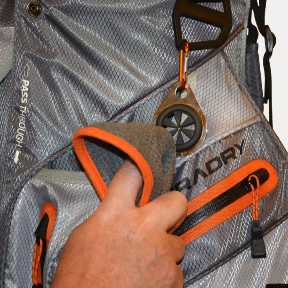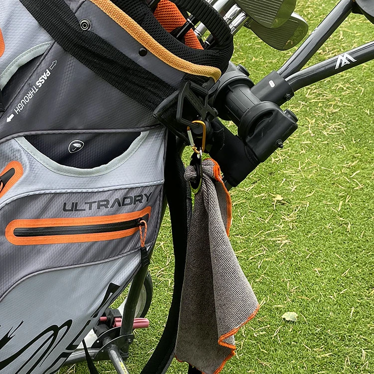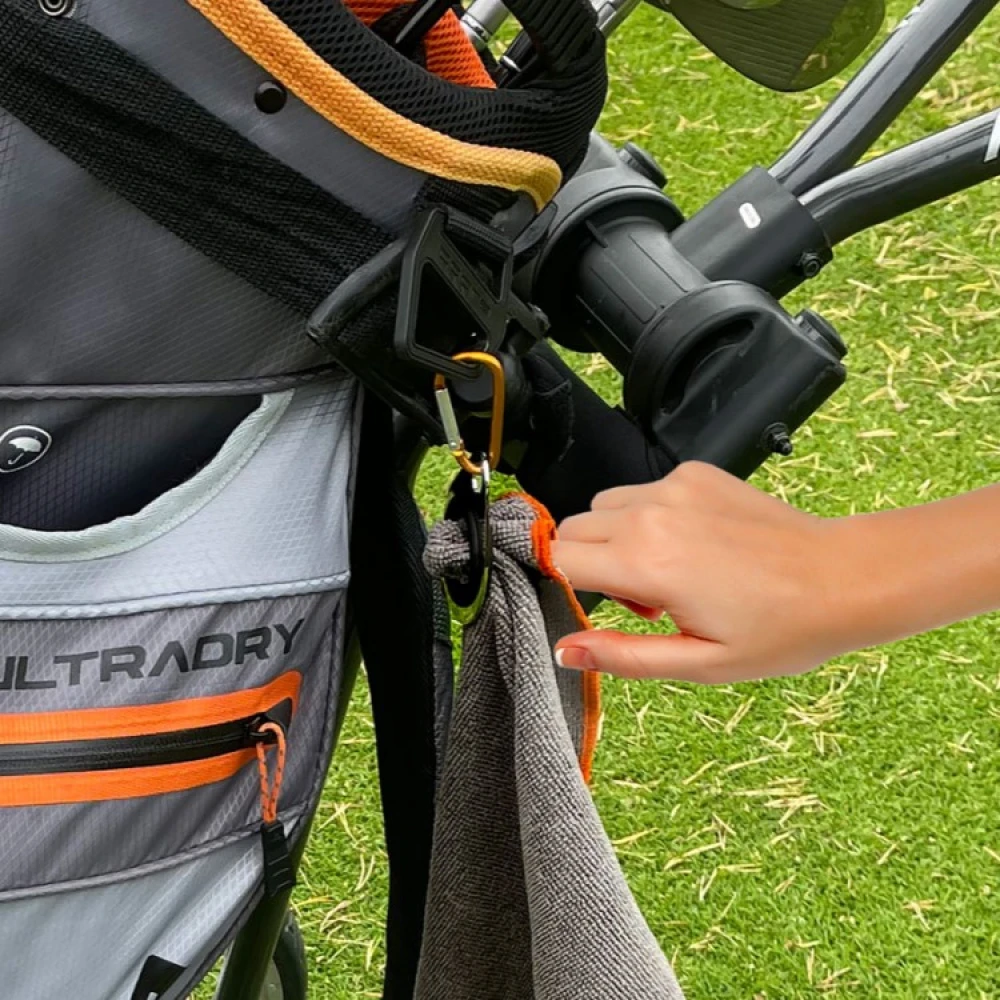Med den lille karabinhage kan du nemt hænge håndklædeholderen fast til dit tøj, din golftaske, klapvogn eller rygsæk. Med håndklædebøjlen har du altid håndklædet i armslængde, og den praktiske lynlås gør det nemt at fastgøre og afmontere håndklædet fra håndklædeholderen.