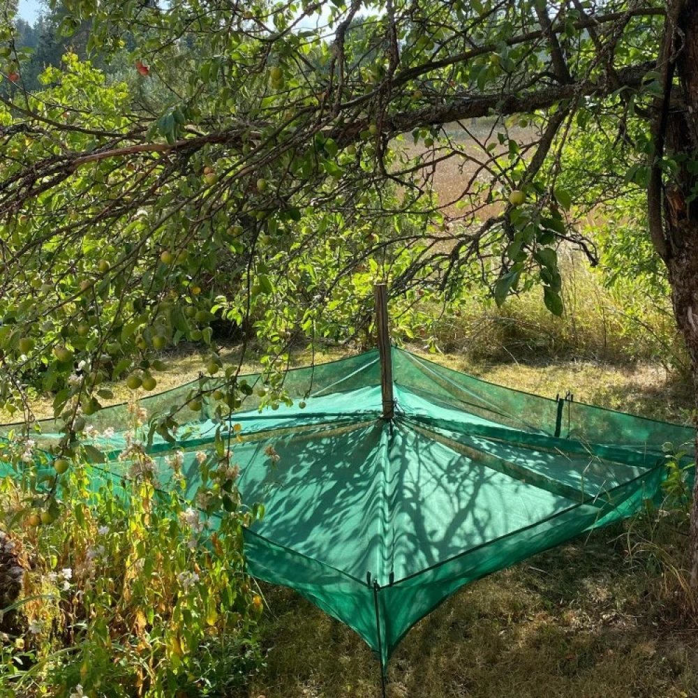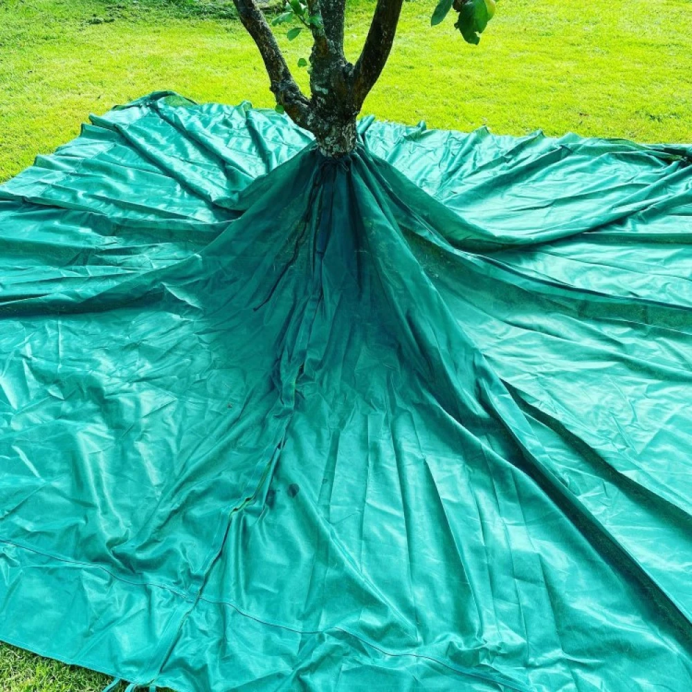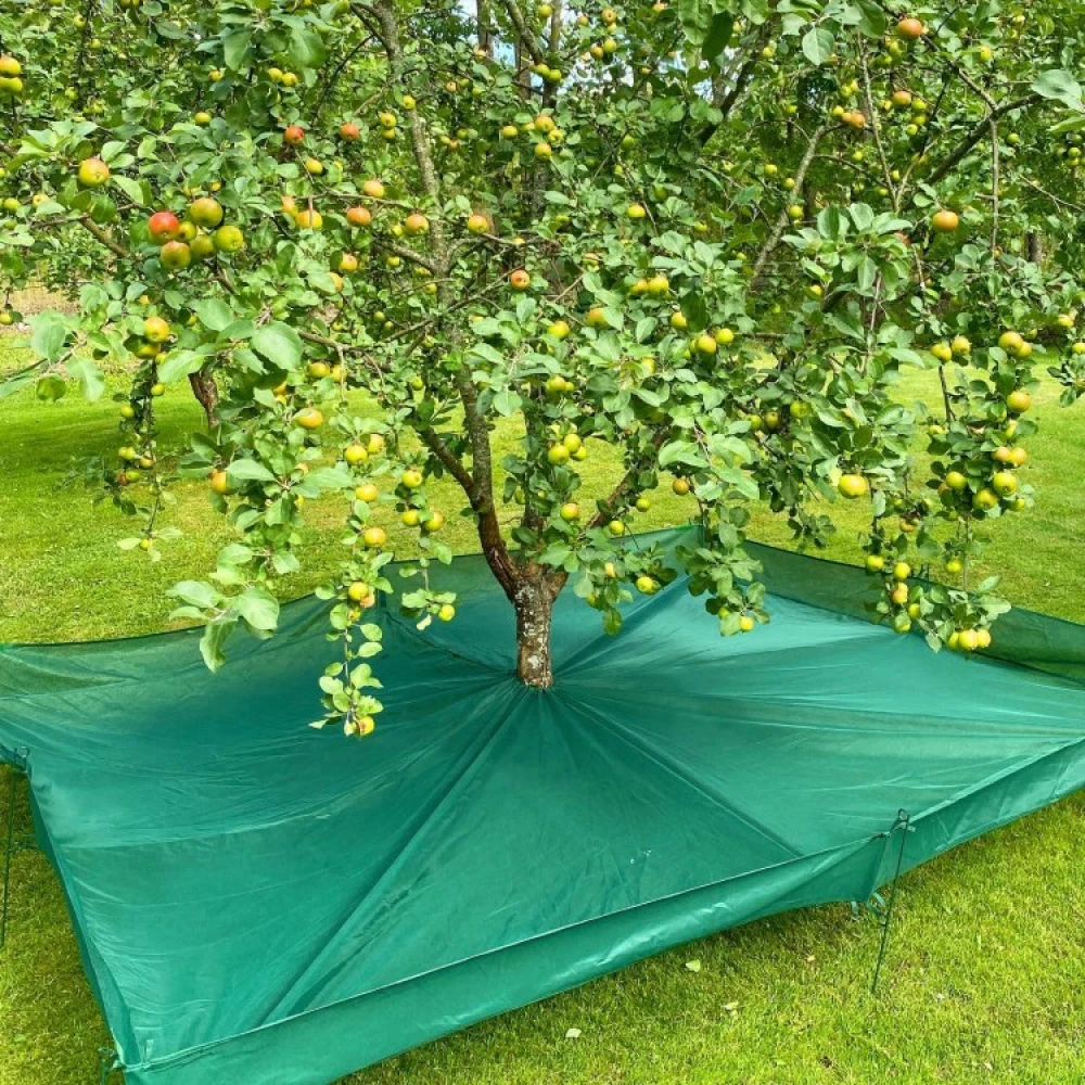 Når det er tid til at høste frugterne, skal du spænde høstnettet ud under frugttræet. De modne frugter kan derefter høstes hurtigt ved at ryste frugterne fra de øverste grene. Frugten lander blødt i nettet og kan hurtigt samles op.