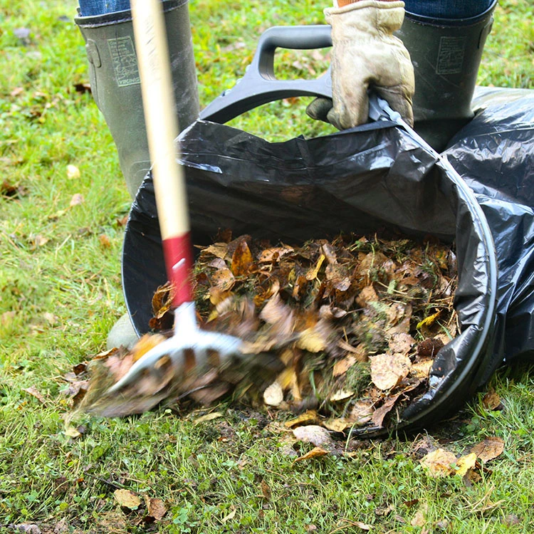 Den bærbare holder til affaldssække holder din 125 liters affaldspose frem og gør det nemt at fylde den med blade og haveaffald. Poseholderen er formet og ligger fladt mod jorden og gør det lettere at opsamle græs, kviste, blade og grene.