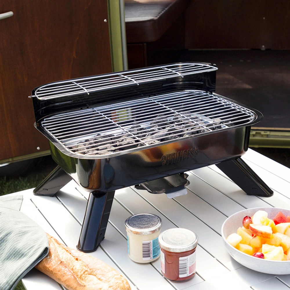 Hybridgrillen kan stilles på bordet og er praktisk, når du ikke har plads til en stor grill. Grillen har et aftageligt varmeelement, der gør, at du kan grille med kul den ene dag og bruge den som elgrill på et andet tidspunkt.