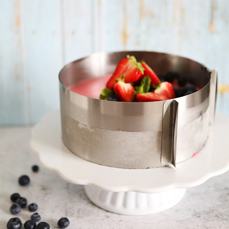 Kageringen er 8,5 cm høj og kan sættes til mellem 16-30 cm i diameter. Når du skal samle kagen, sætter du formen rundt om kagen og trækker kanterne sammen, så ringen sikrer siderne. Det bliver nemt at lave de forskellige kagelag og fyldet løber ikke ud på siderne.
