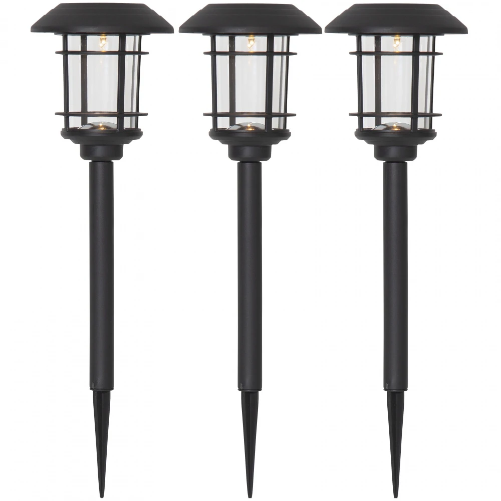 De tre lamper er 34 cm høje, nemme at håndtere og passer på sig selv, når du stiller dem i haven eller på altanen. De er helt selvstændige og behøver ikke stå tæt på hinanden, men du kan stille dem der, hvor de passer bedst.