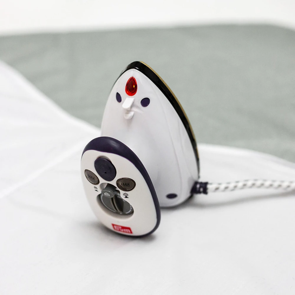 Ministrygejernet ligger godt i hånden og er nem at manøvrere, så du kan stryge på små flader. Med knappen på toppen regulerer du trinløst strygejernets temperatur mellem tre forskellige positioner: