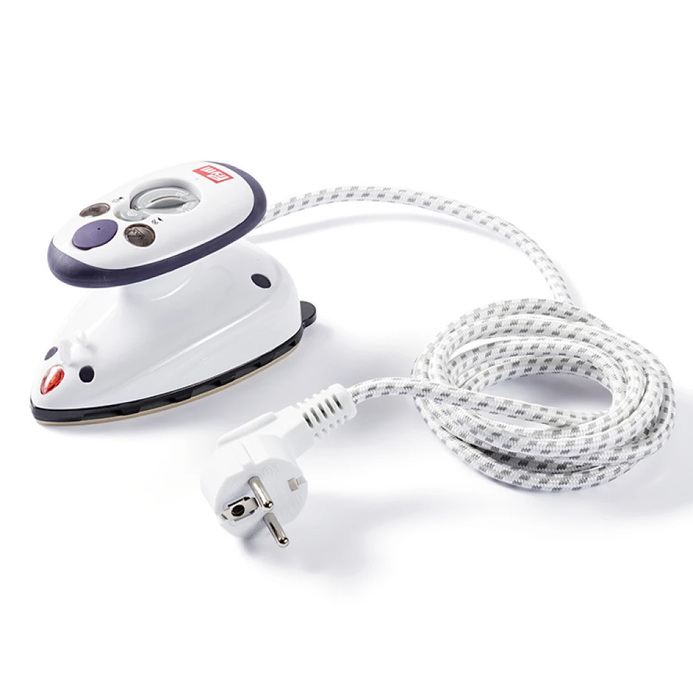 Dette lille mini strygejern er perfekt at bruge til præcisionsstrygning i hjørner og sømme og andre svære steder på både tøj og andre tekstiler. Mini strygejernet vejer kun 500 gram og er nem at tage med på turen for hurtigt at kunne glatte en krøllet skjorte ud med den praktiske dampfunktion.