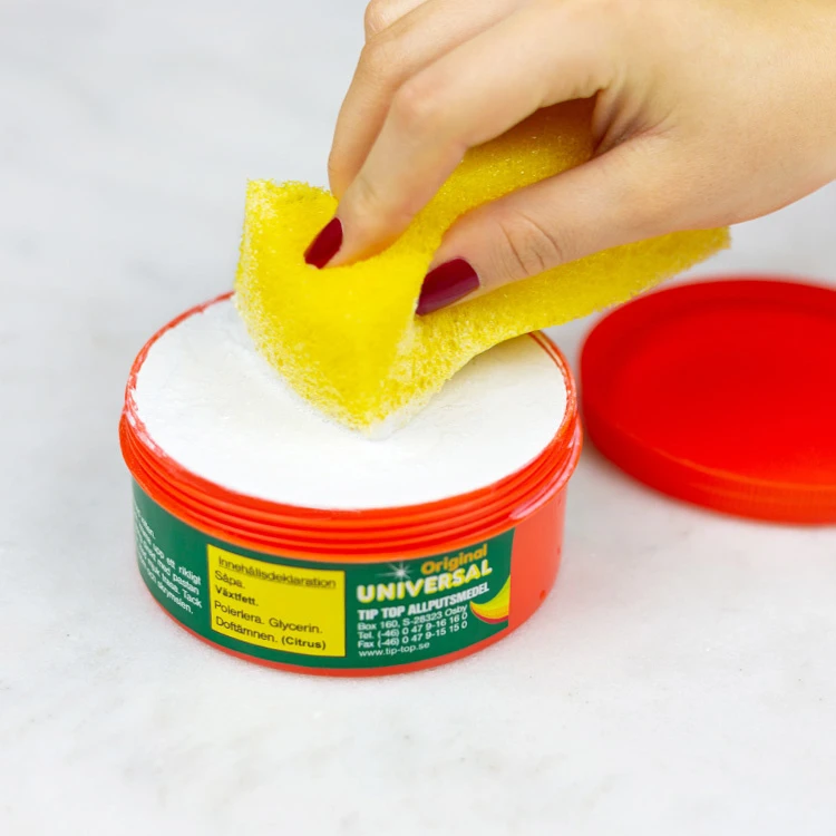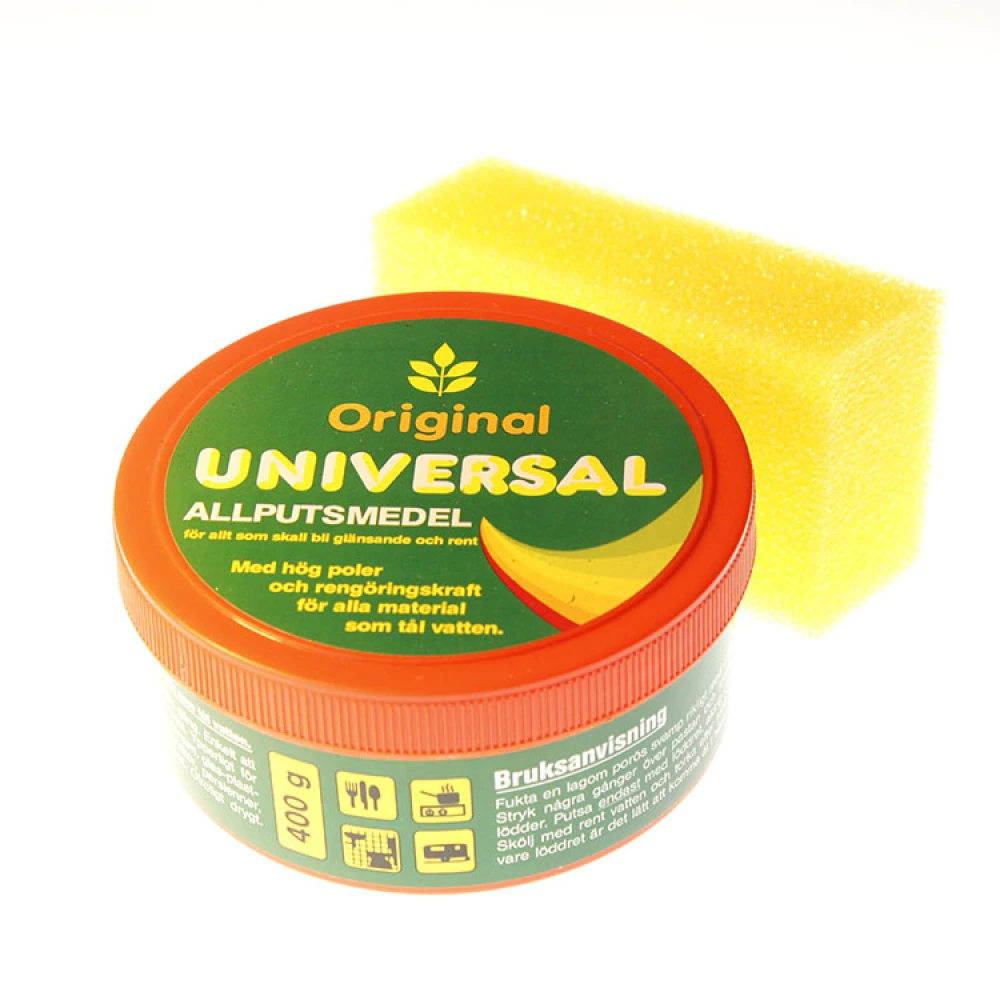 Pudsemidlet er meget effektiv og kan bruges til det meste i hjemmet, bilen, båden og campingvognen. Universal pudsemidlet er nemt at arbejde med, og du kan nemt lave skum med svampen. Skummet gør det nemt at komme til krogene og snavs og smuds ender på svampen som er nem at skylle af.