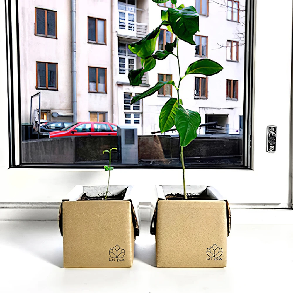 Hvor hurtigt træet vokser afhænger blandt andet af tilgangen af lys. Jo mere lys træet får, jo hurtigere vokser træet og efter cirka et år er træerne vokset nok til at blive flyttet til en større potte. Det er meget nemt at plante træet om, når man folder kassen ud. Jorden kan derefter plantes i den nye krukke. Den tomme vækstkasse kan derefter genbruges til at plante nye planter.
