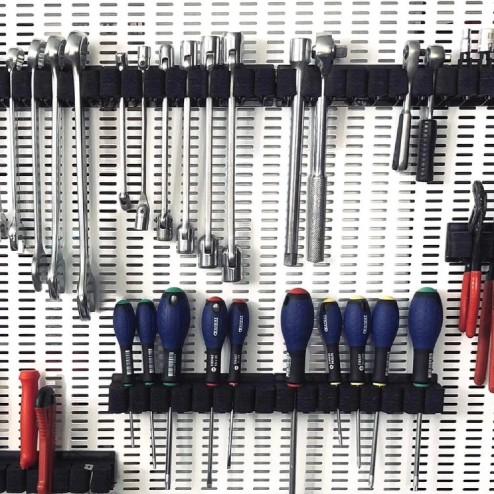 Pakken indeholder 3 værktøjsholdere. Hver værktøjsholder har plads til 7 forskellige værktøjer fra 3 mm til 17 mm i størrelse. I alt kan de tre værktøjsholdere rumme 21 forskellige værktøjer. Du kan bruge de tre værktøjsholdere ved siden af hinanden eller hver for sig. Hæng dem der, hvor du har mest brug for dem!